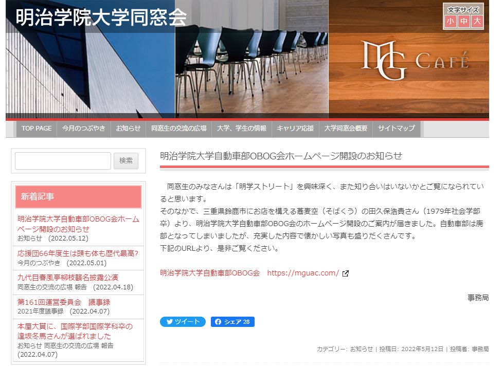 明学自動車部OBOG会サイトをご紹介していただいております。