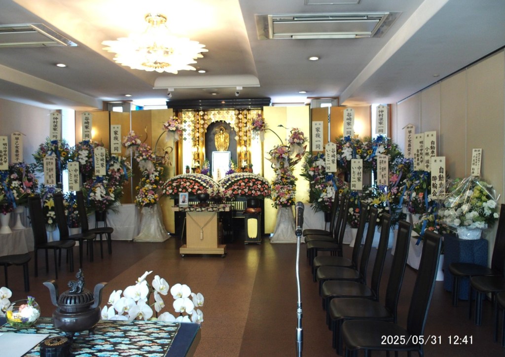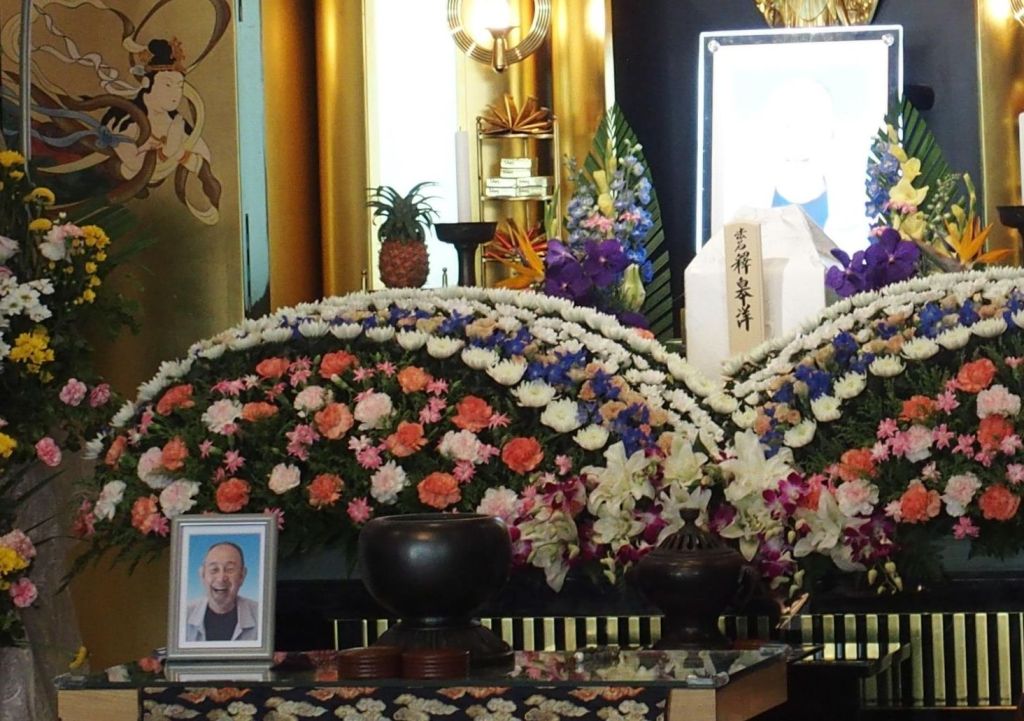 以前に仕事などで沖縄にいた時期があるとはいえ、今回行って5年のうちにいろいろ活動をしていたせいか、また人柄もあり大典寺の葬儀では参列者三十名くらい、焼香においでいただいた方五十名ほどの参列をいただいた、立派な葬儀でした。式典の様子の細部は下の写真をご覧ください。